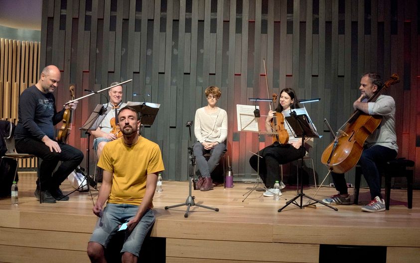 Still from the rehearsal of ‘Il Tramonto’, a performance exploring the connections between Percy B. Shelley’s poem ‘The Sunset’ and the cantata by Ottorino Respighi, part of the 2nd Sacred Music Festival organised by the Greek National Opera in Athens, May 2024